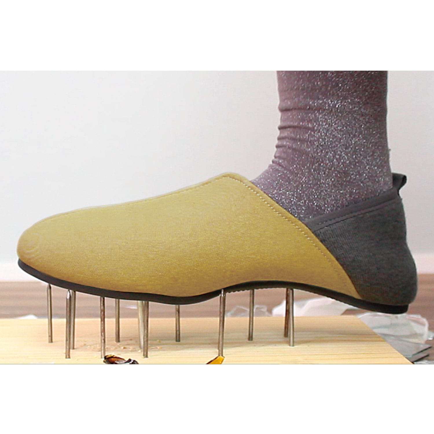 ガラスや釘を踏んでも大丈夫! 中敷きには、防弾チョッキに使われるアラミド繊維を使用。耐踏み抜き性試験をクリアした、安全性の高いスリッパです。
