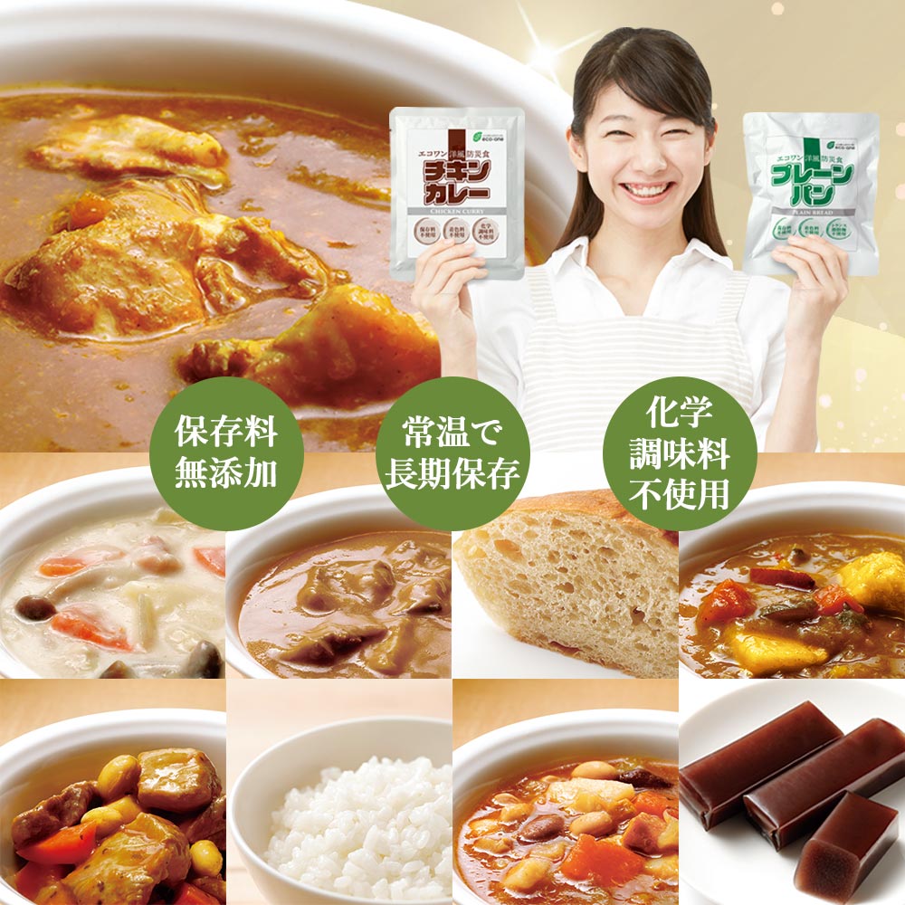 「備蓄用の非常食が欲しいけど添加物が心配……」そんな声から生まれたのが、『エコワン防災食セット』です。